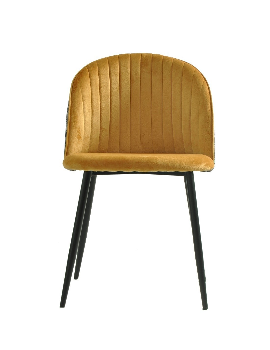 Silla PALM YELLOW, metal, tapizado velvet amarillo con trasera palm