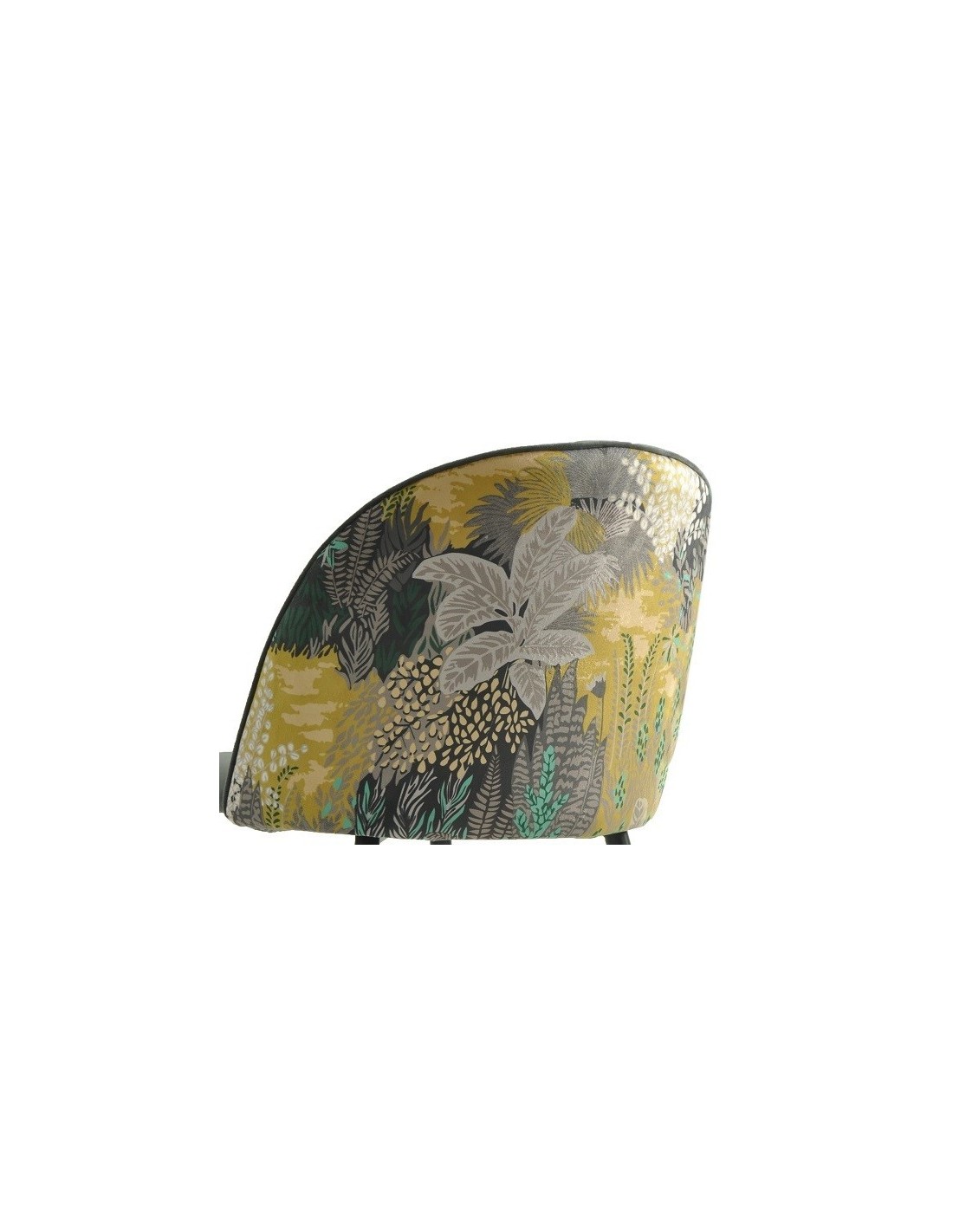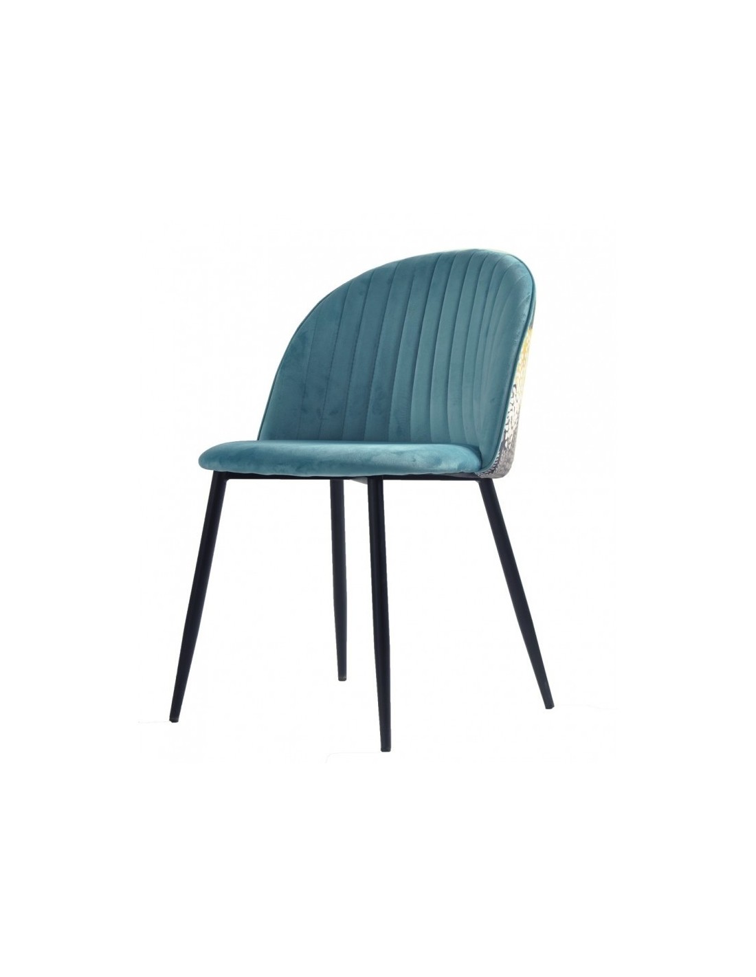 -Asiento y respaldo tapizados en terciopelo de color azul, trasera del respaldo en tejido decorado palm