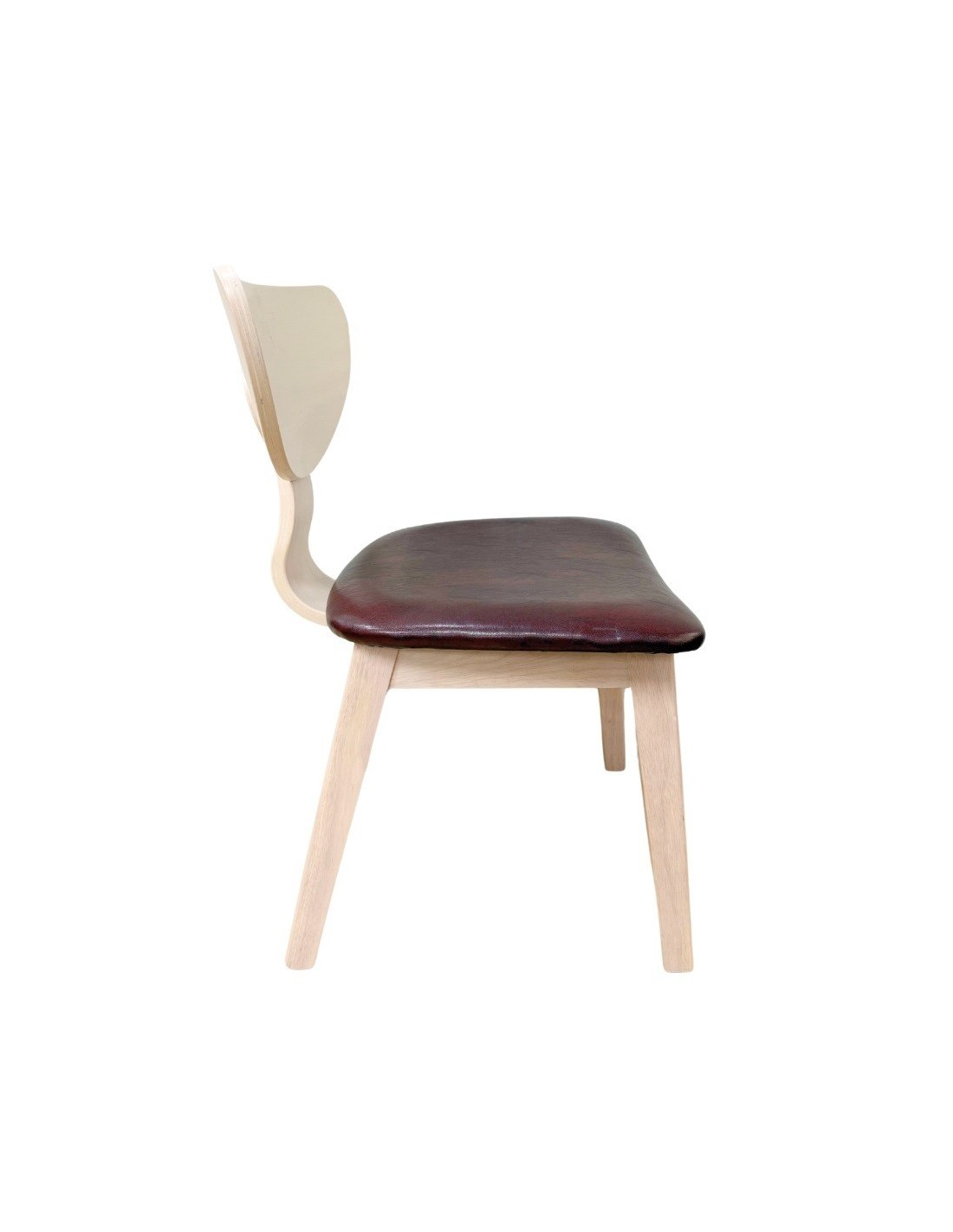 Silla DUBLIN, contrachapado de madera de hevea, natural, similpiel marrón