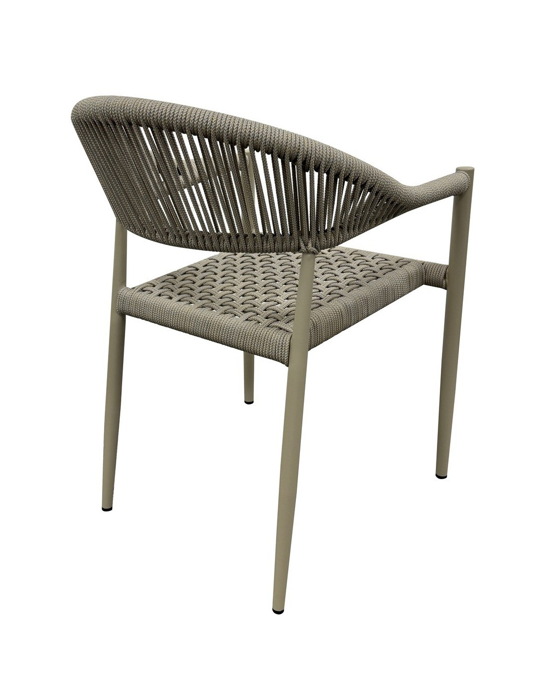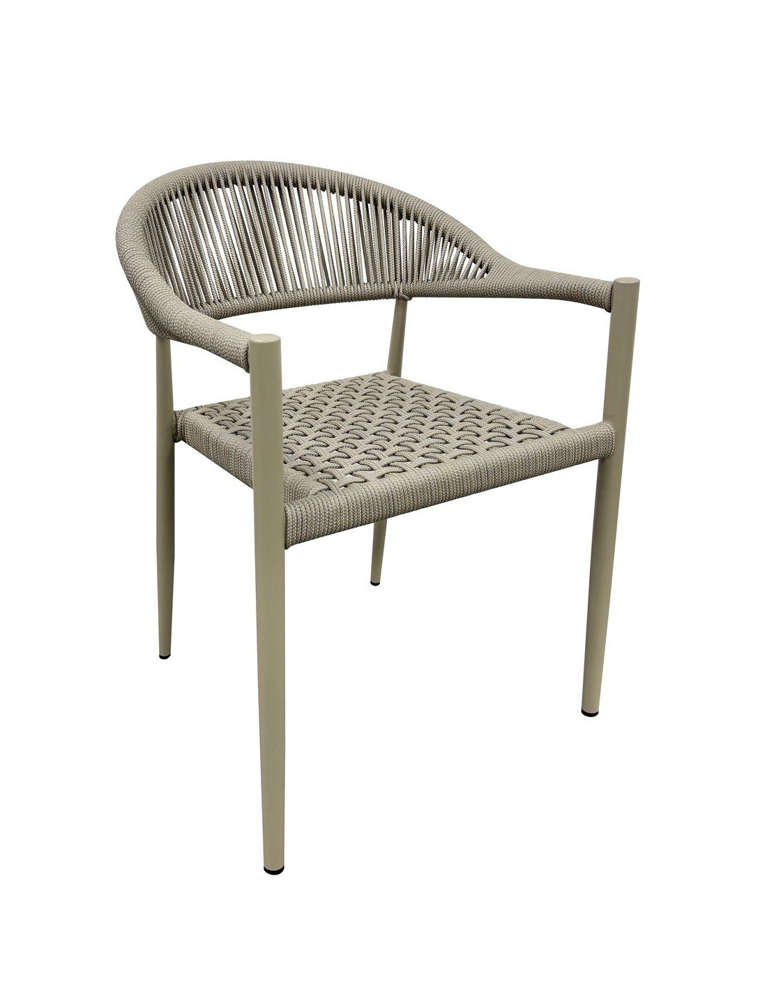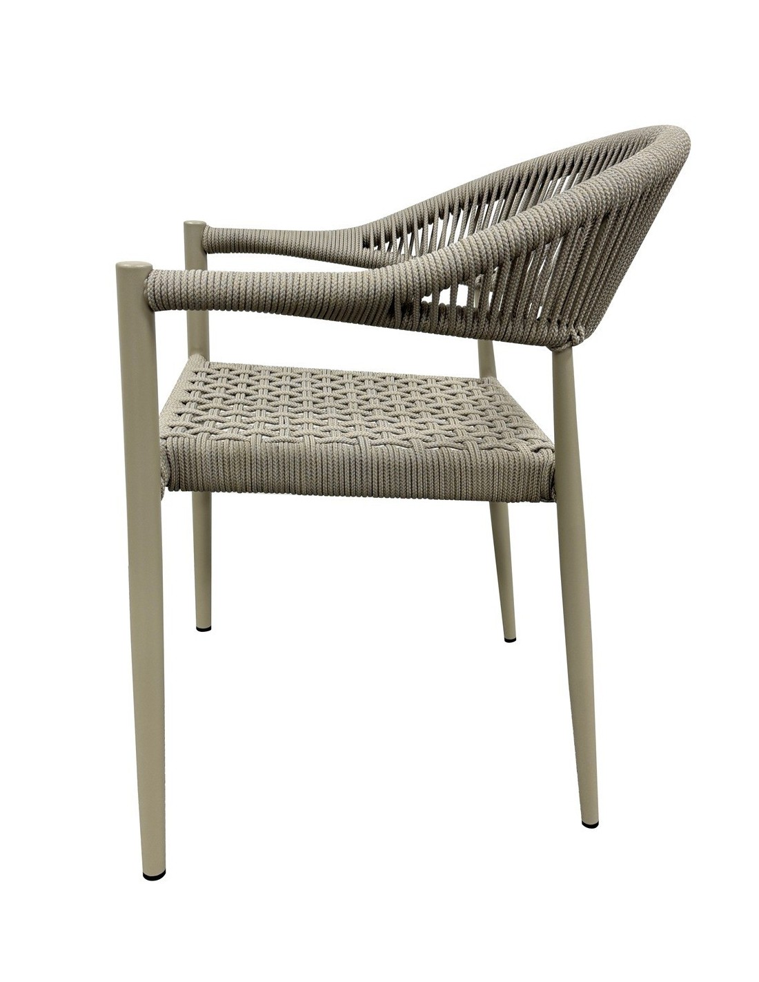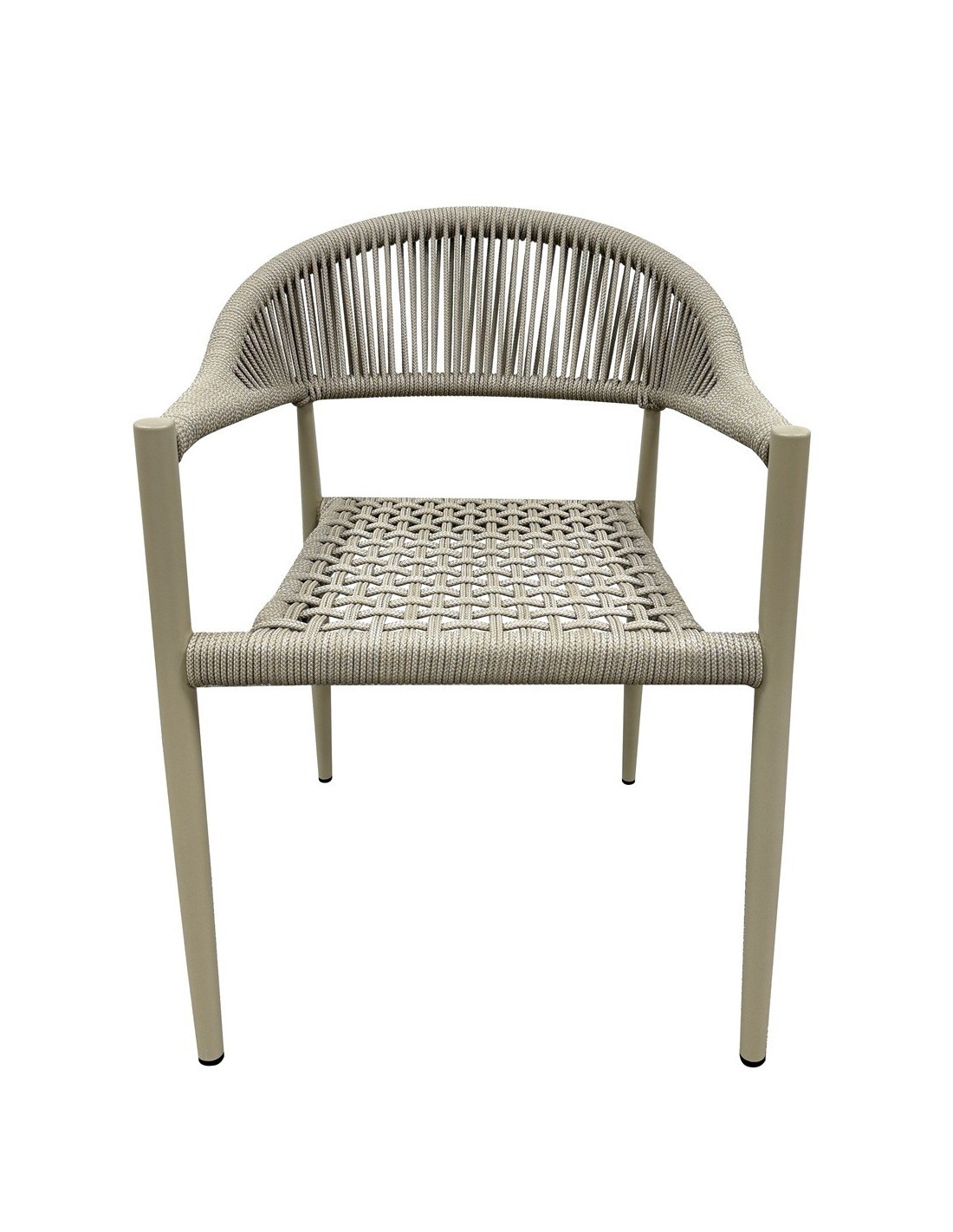 Sillón CANNES, apilable, aluminio, asiento y respaldo de cuerda beige