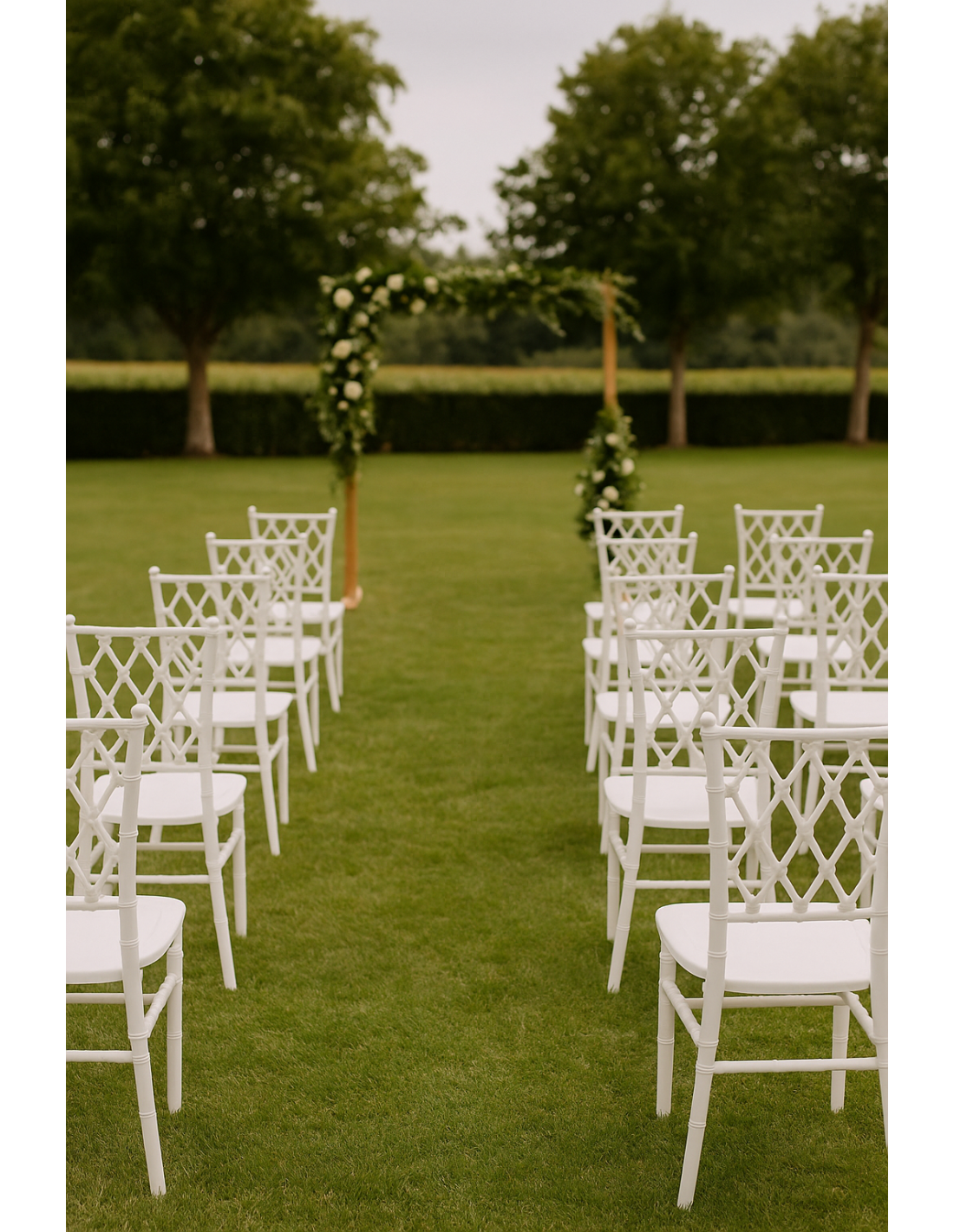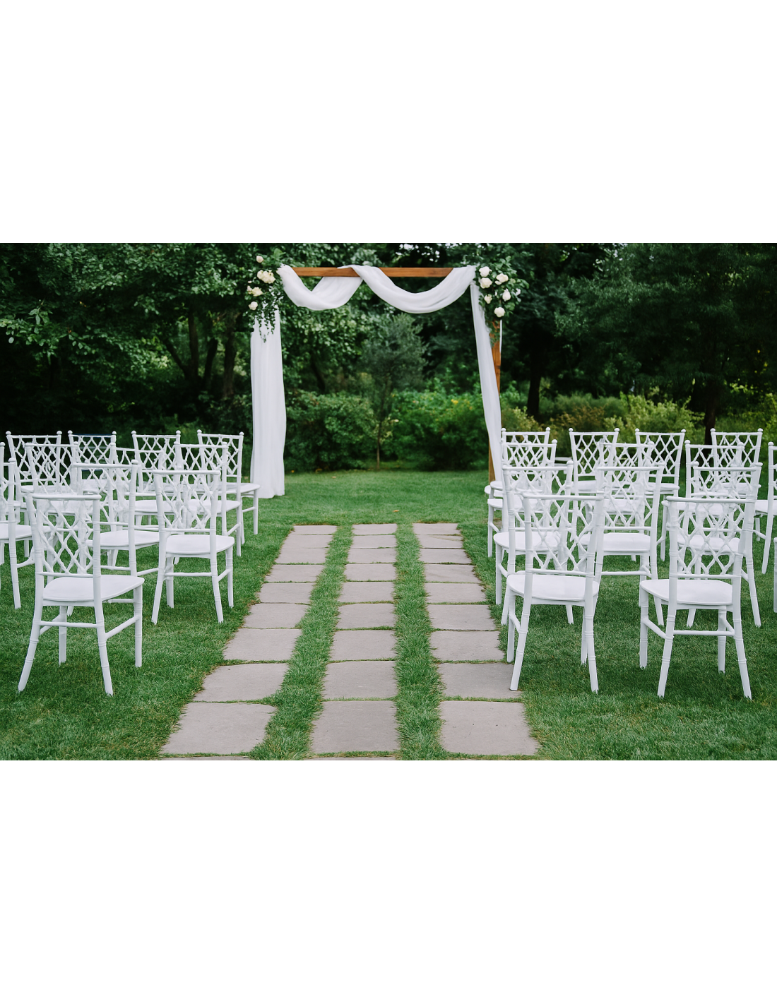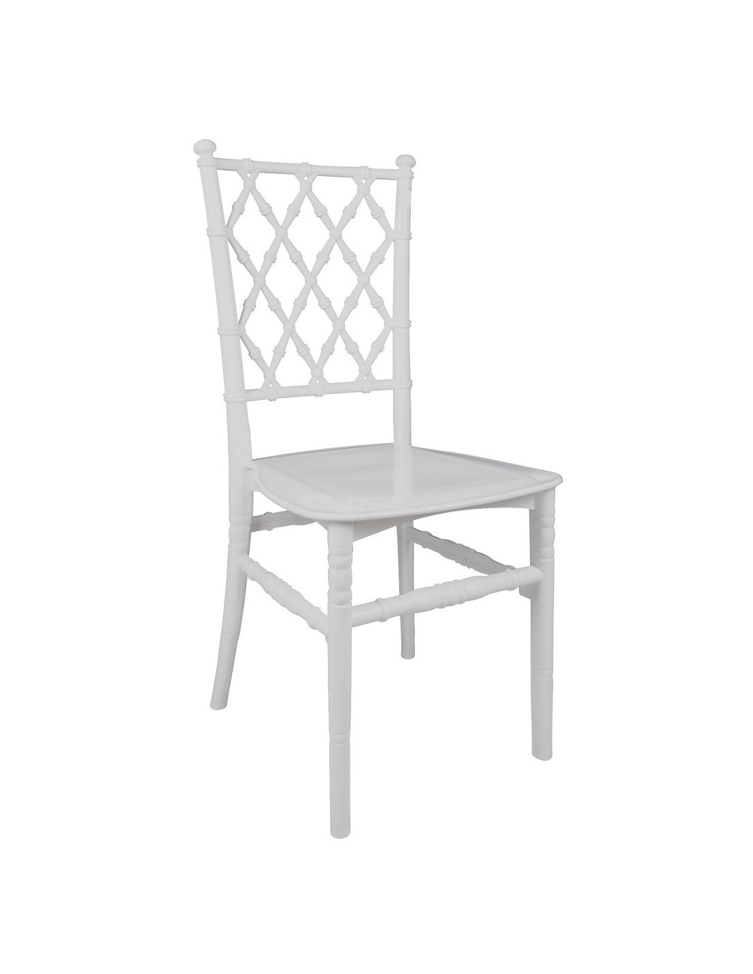 Silla de catering y eventos, apilable, polipropileno de color blanco. Uso en exterior e interior. Silla muy resistente para uso en hostelería y doméstico. Inyección asistida por gas.