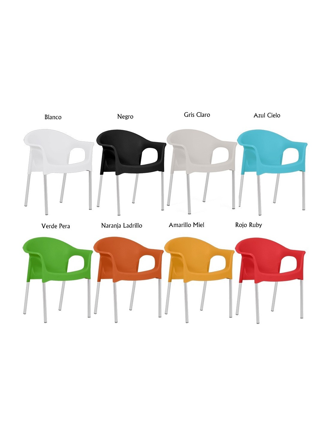 Sillón apilable, polipropileno antracita. Uso en exterior e interior. Otros colores disponibles. Taburete a juego