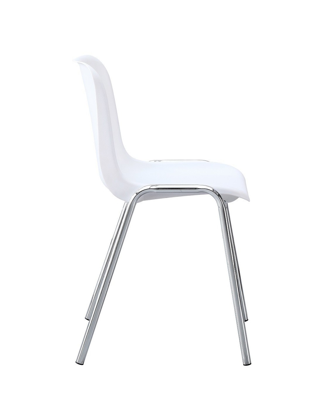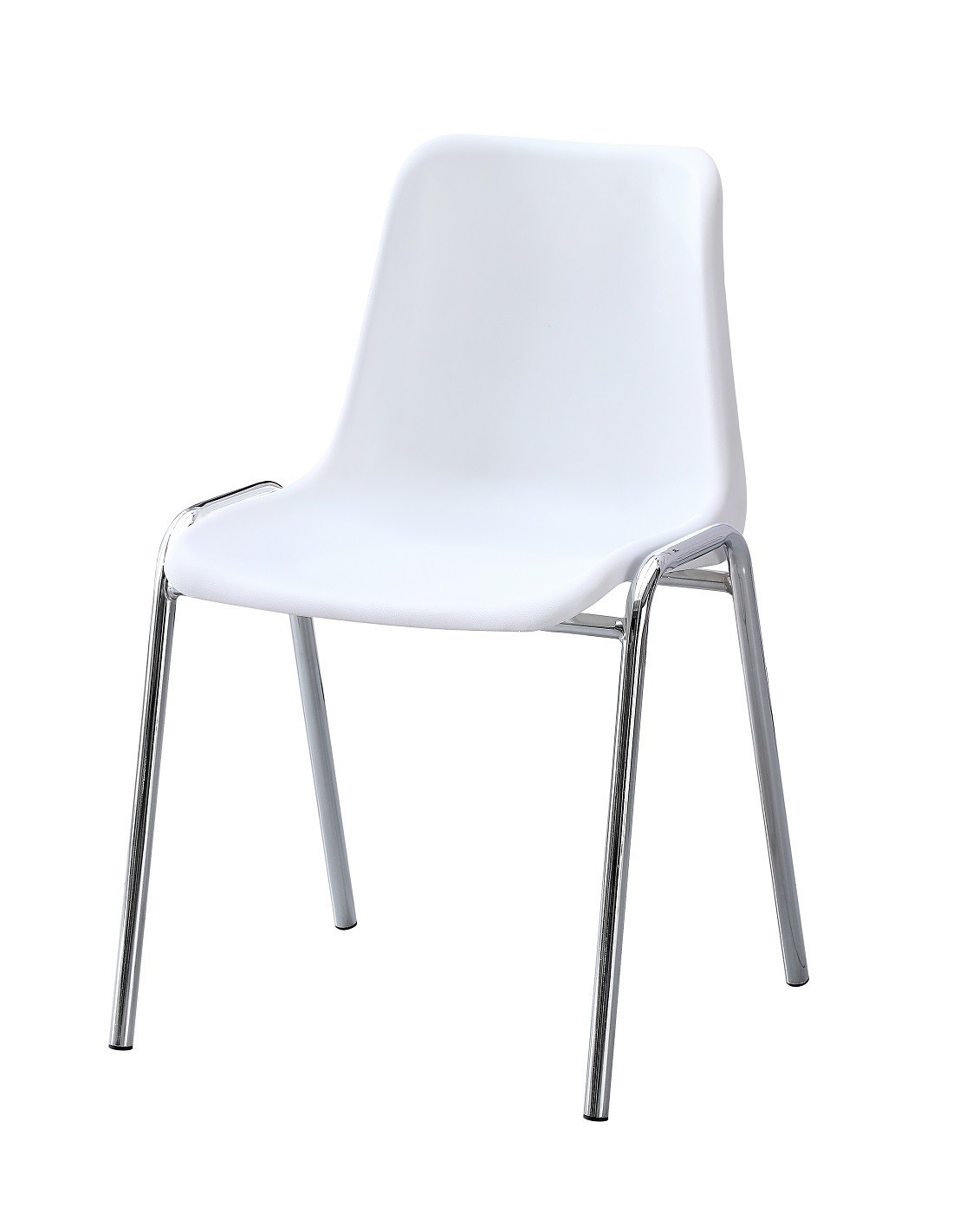 Silla apilable con asiento monoblock de polipropileno blanco. Armazón tubular cromado. Otros colores disponibles