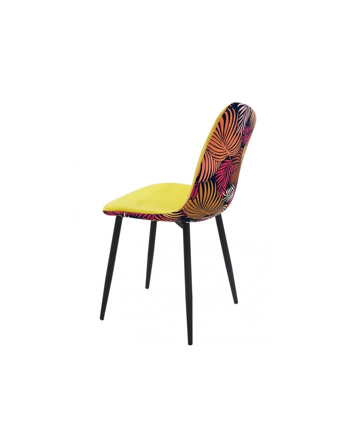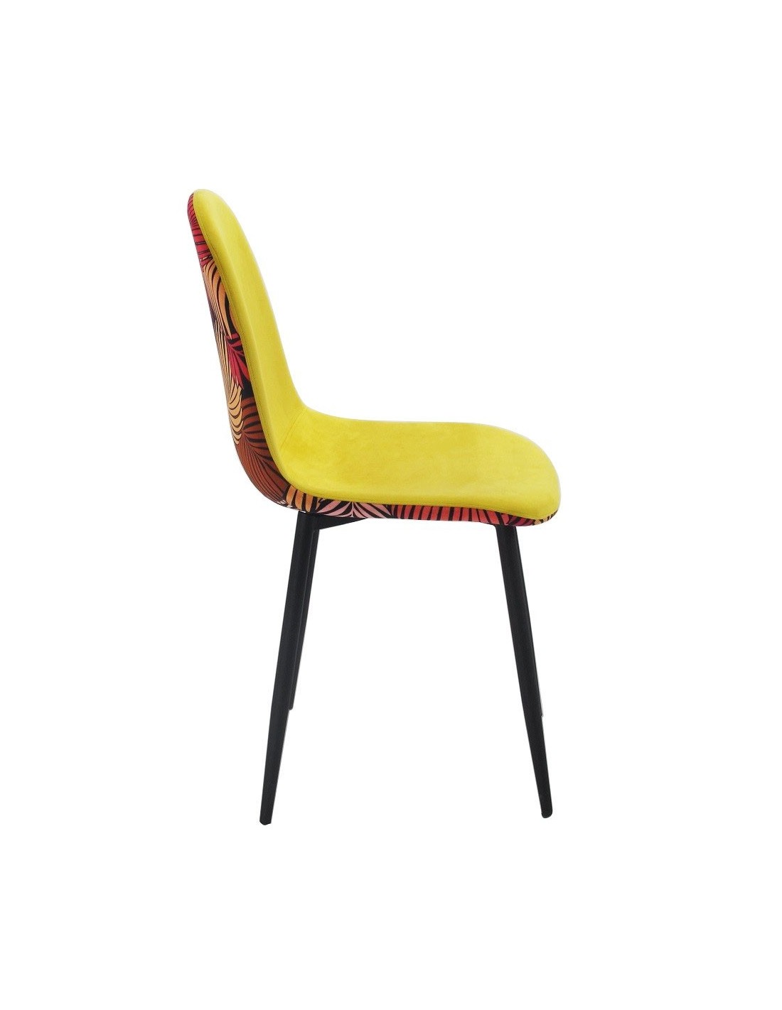 Silla HORUS NEW, metal, tapizado velvet amarillo con trasera floral a juego