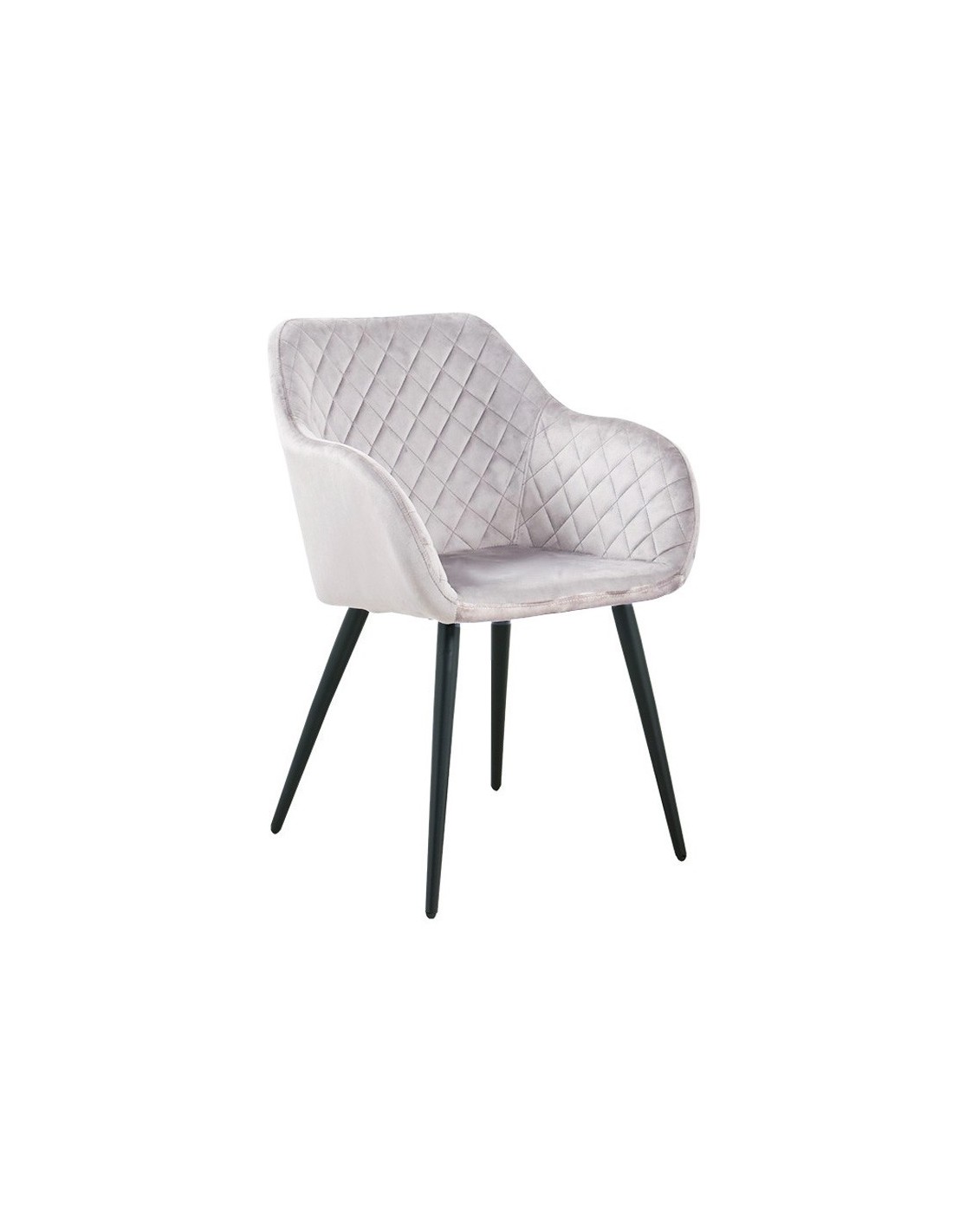 Sillón de diseño, armazón metálico con acabado epoxi negro, asiento y respaldo tapizados en velvet 13 gris claro. Otros colores disponibles.