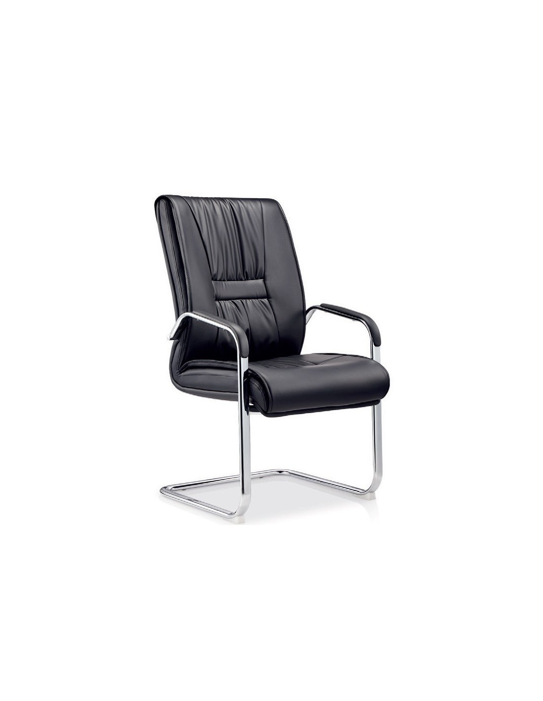 Sillón de oficina FLANDES, fijo de patín, cromado, similpiel negra