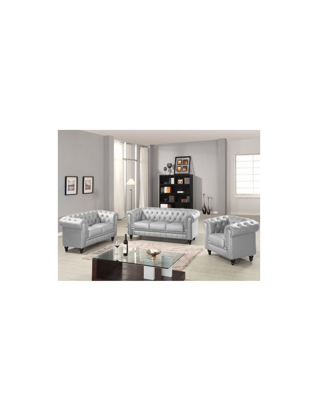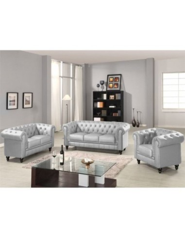 Sofá de diseño, 2 plazas, tapizado en similpiel de color plata. Otros colores disponibles.