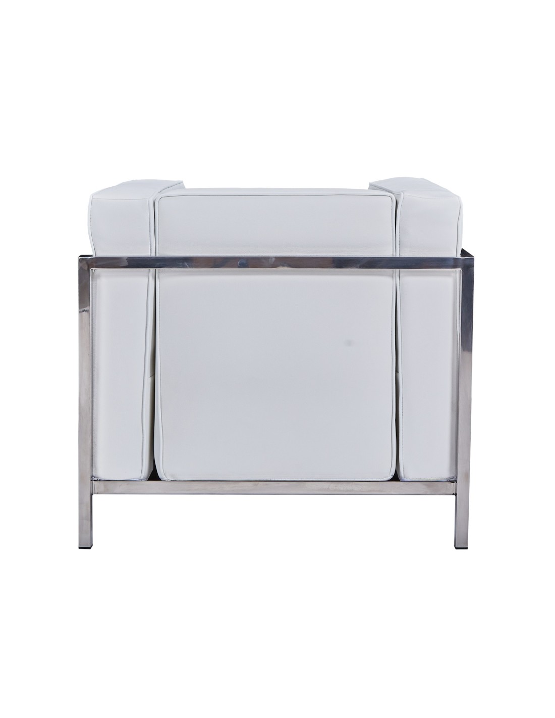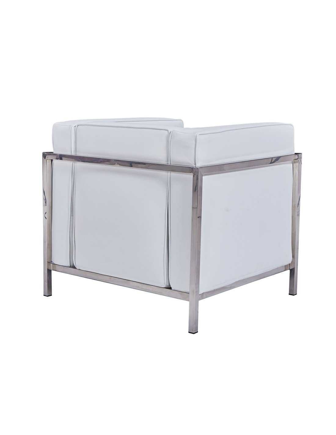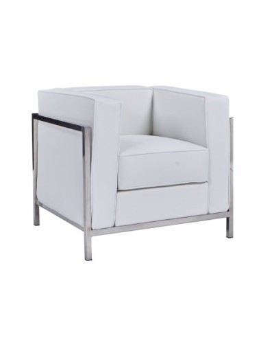 Sillón de diseño, acero inoxidable, tapizado similpiel blanca