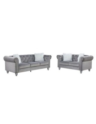 Set Sofás CHESTER STYLE, 3 + 2 plazas, tapizado velvet gris 27