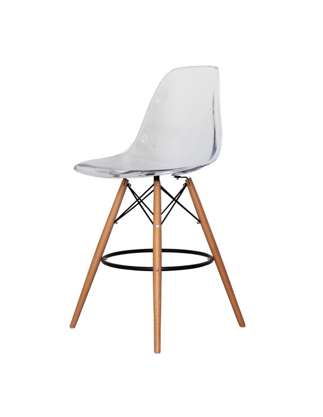 Taburete de diseño, madera, carcasa de PET con acabado transparente. Sillas a juego. -IMPORTANTE: Se entrega con la base montada.