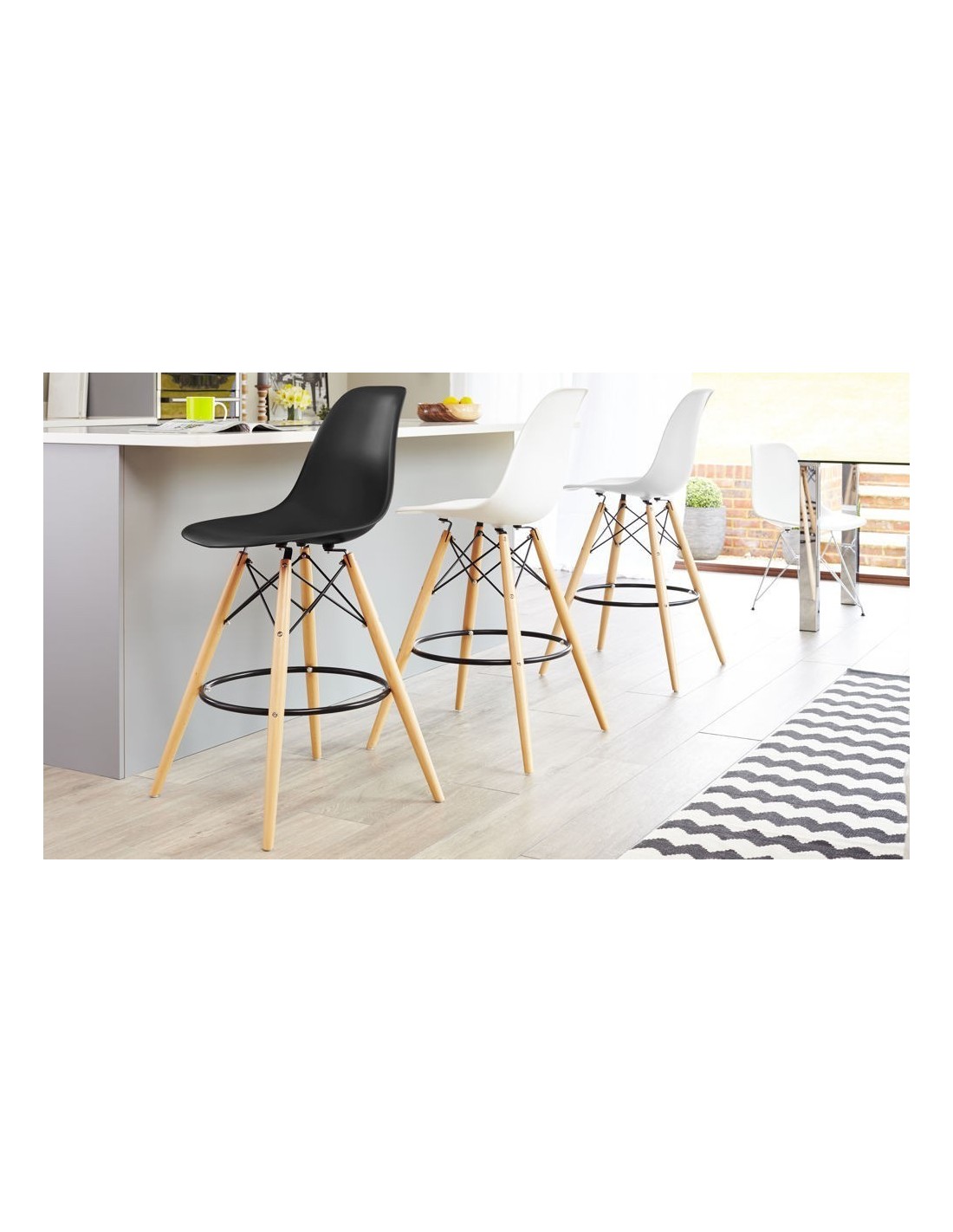 Taburete de diseño, madera, carcasa de polipropileno de color gris oscuro. Sillas y sillones a juego.