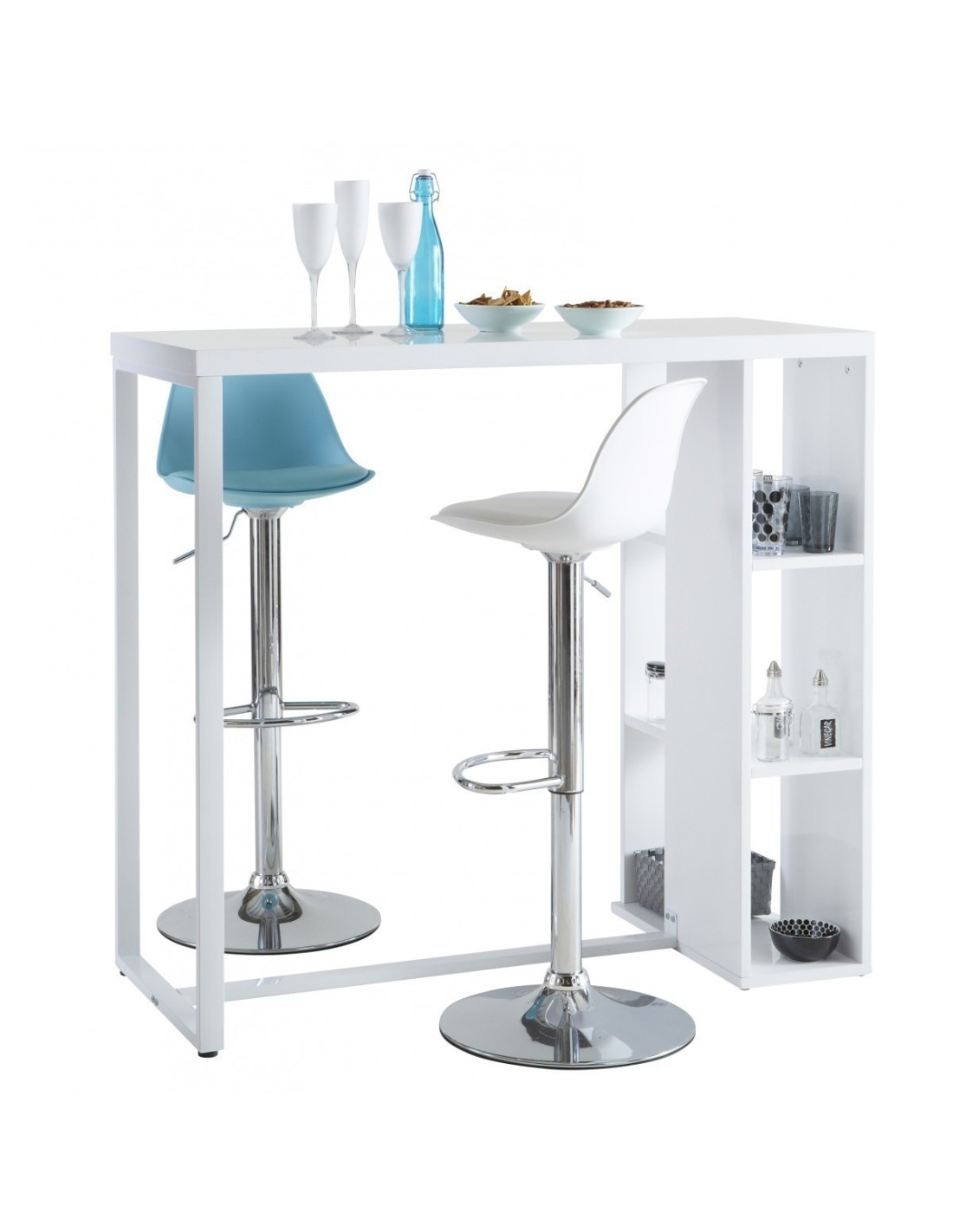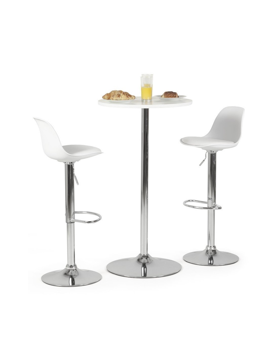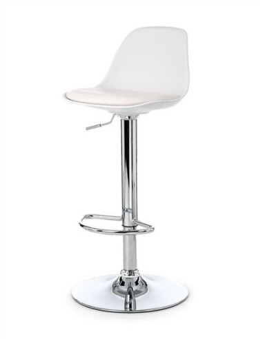 Taburete cromado, carcasa de polipropileno blanco, cojín de similpiel blanco