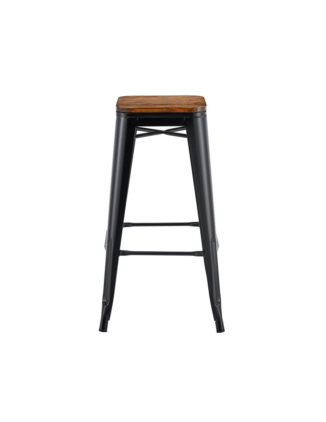 Taburete TOL EK WOOD, acero, negro, asiento madera