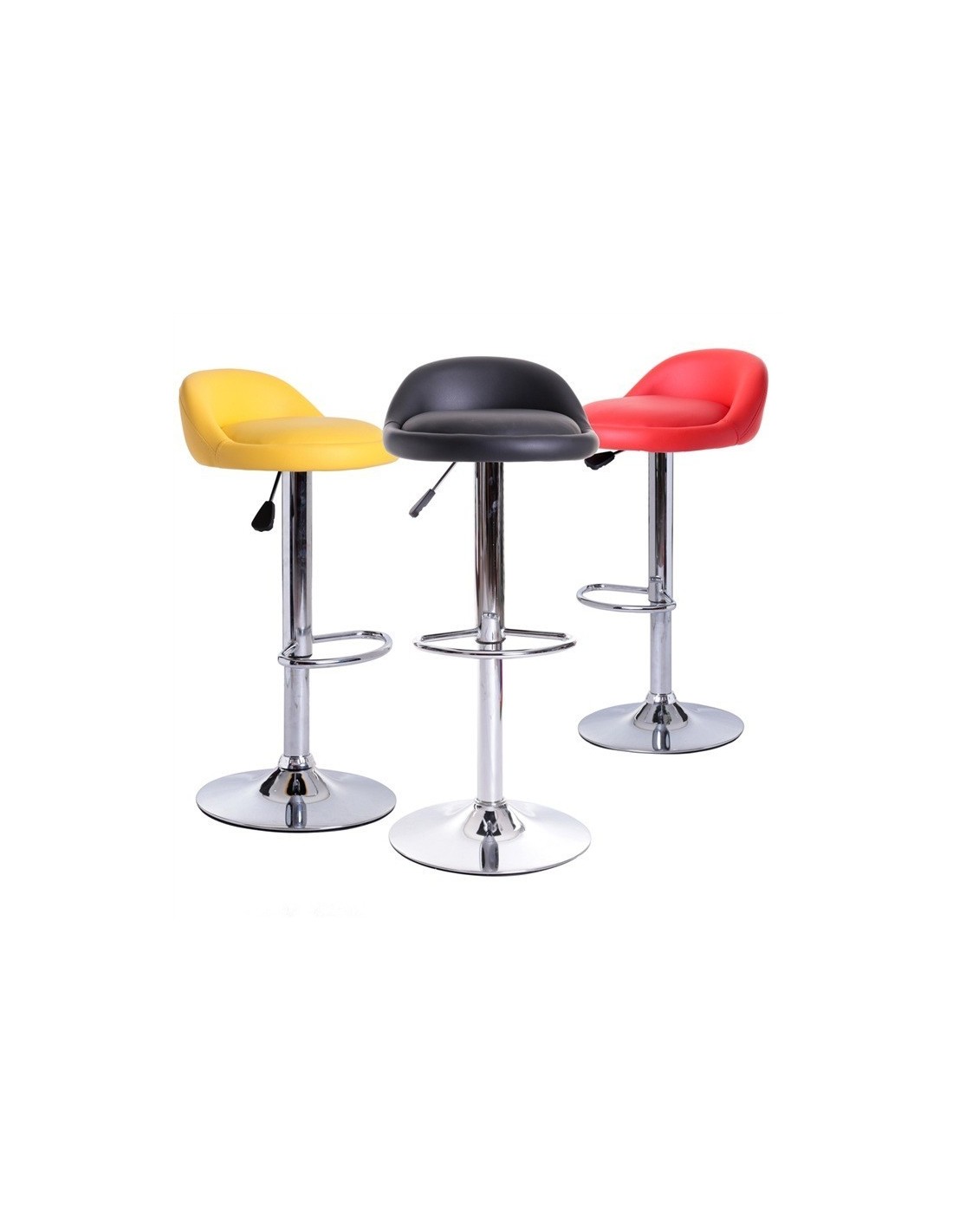 Taburete de diseño, regulable, cromado, similpiel amarilla. Otros colores disponibles.
