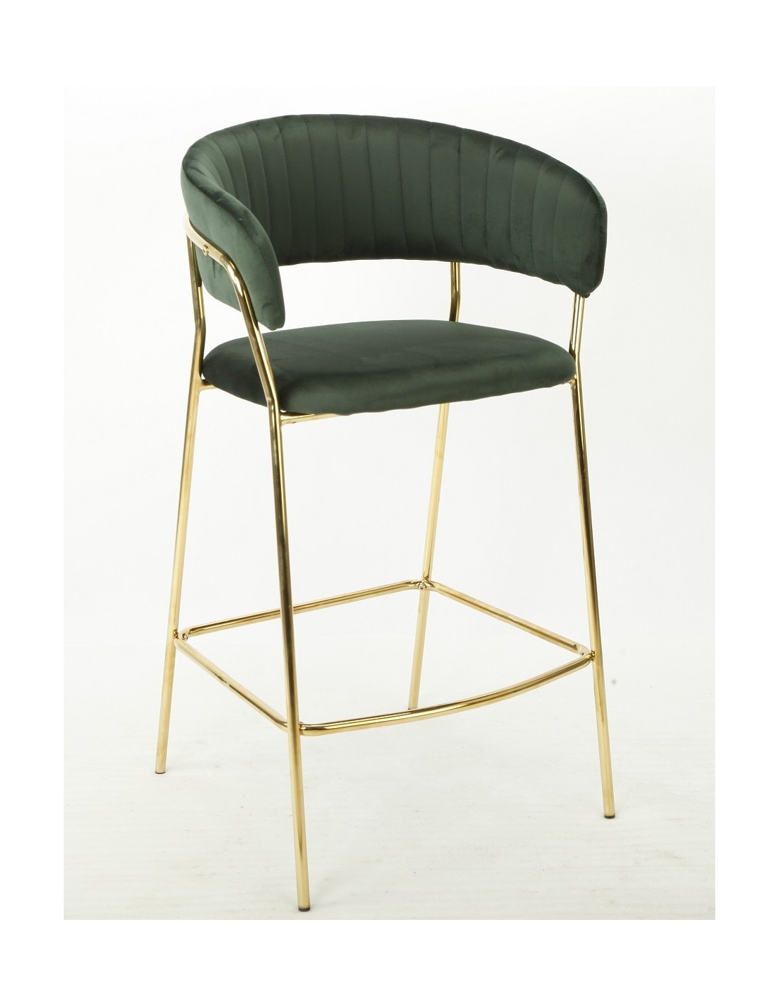 Taburete KEFREN, metal, cromado dorado, tapizado velvet verde oscuro
