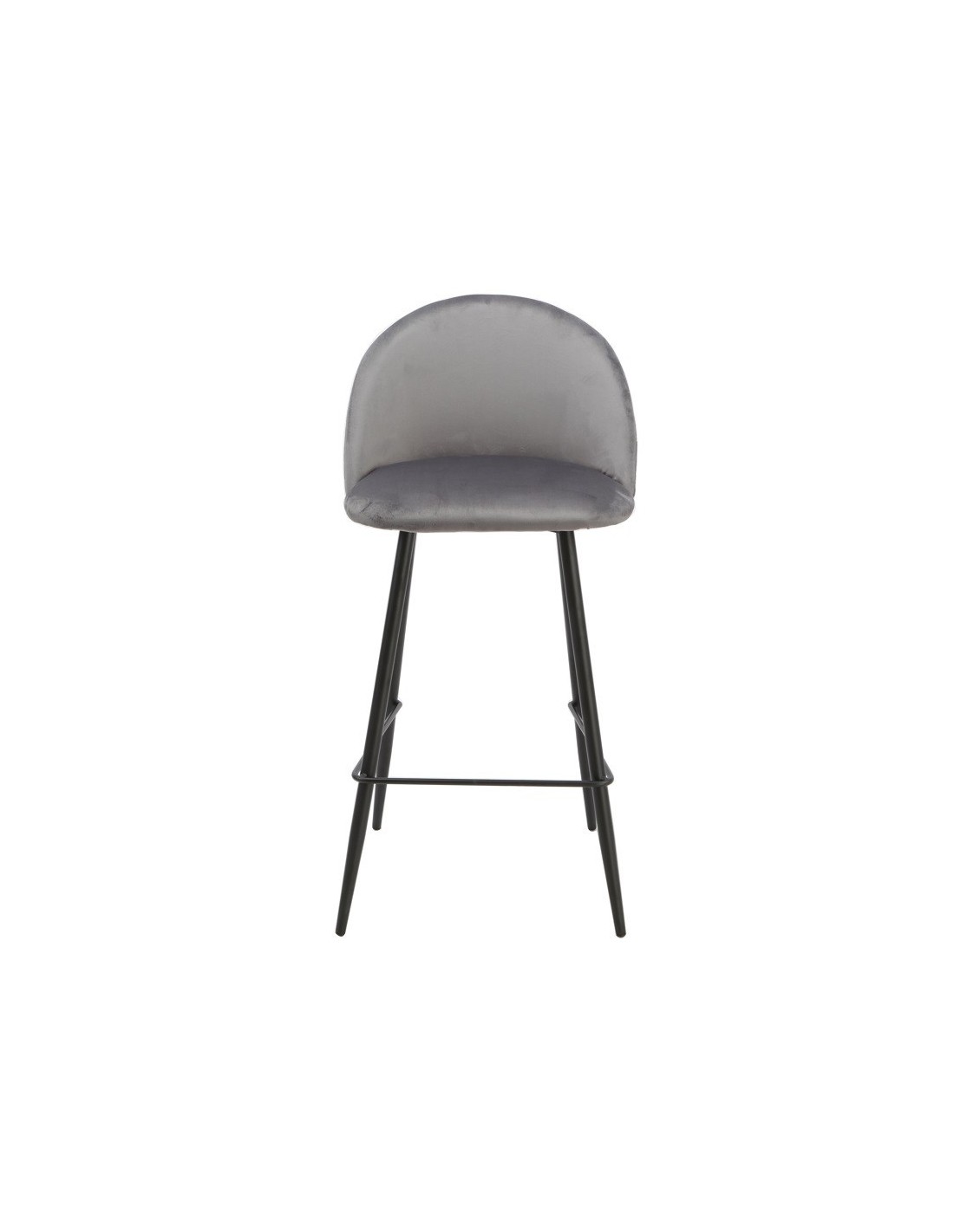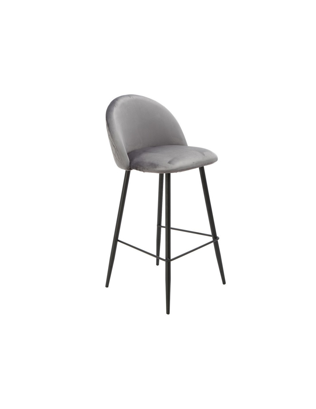 Taburete de diseño, armazón metálico con acabado epoxi negro, asiento tapizado en terciopelo de color gris. Uso en interiores. Otros colores disponibles. Silla a juego