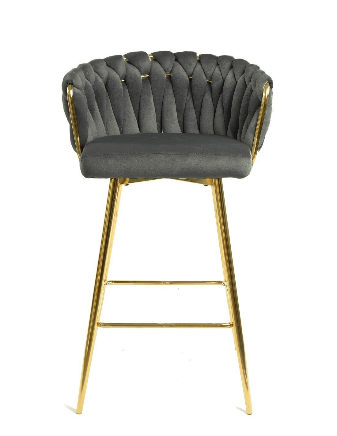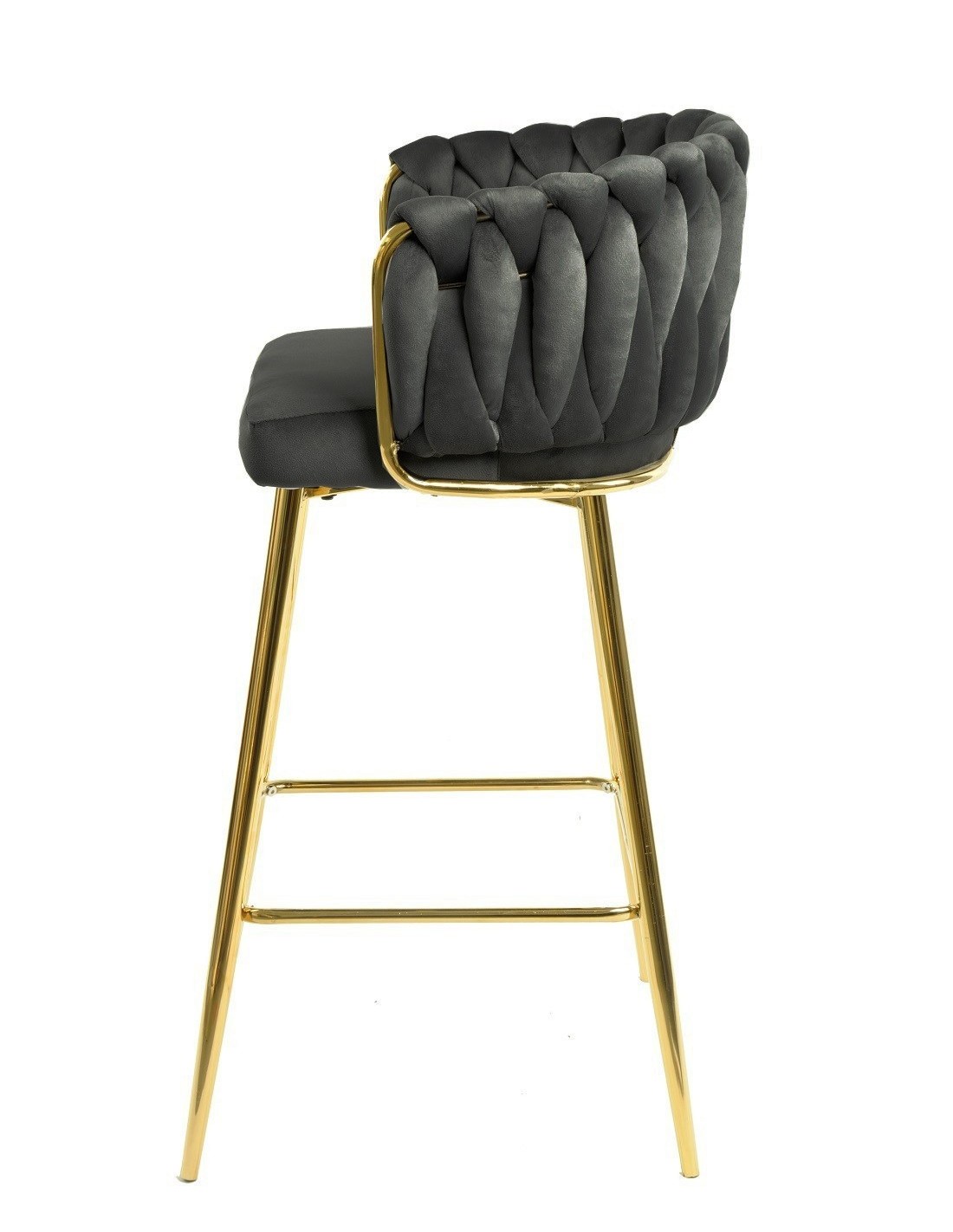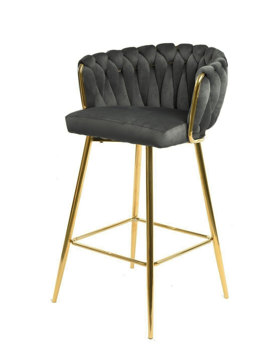 Taburete KING, metal, cromado dorado, tapizado velvet gris oscuro