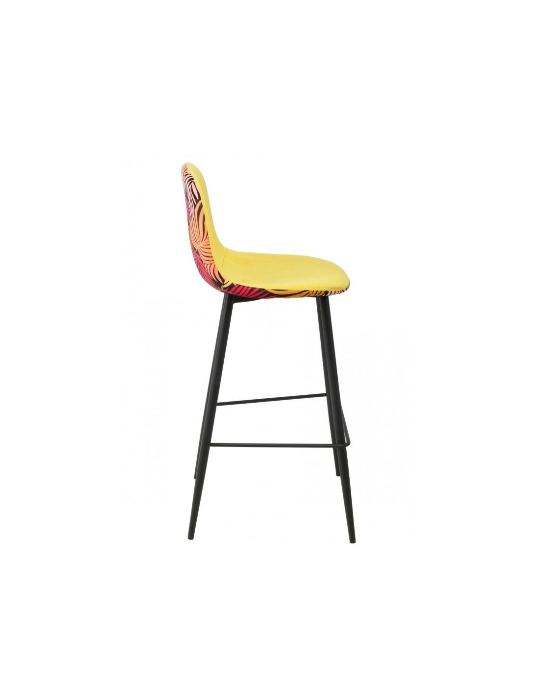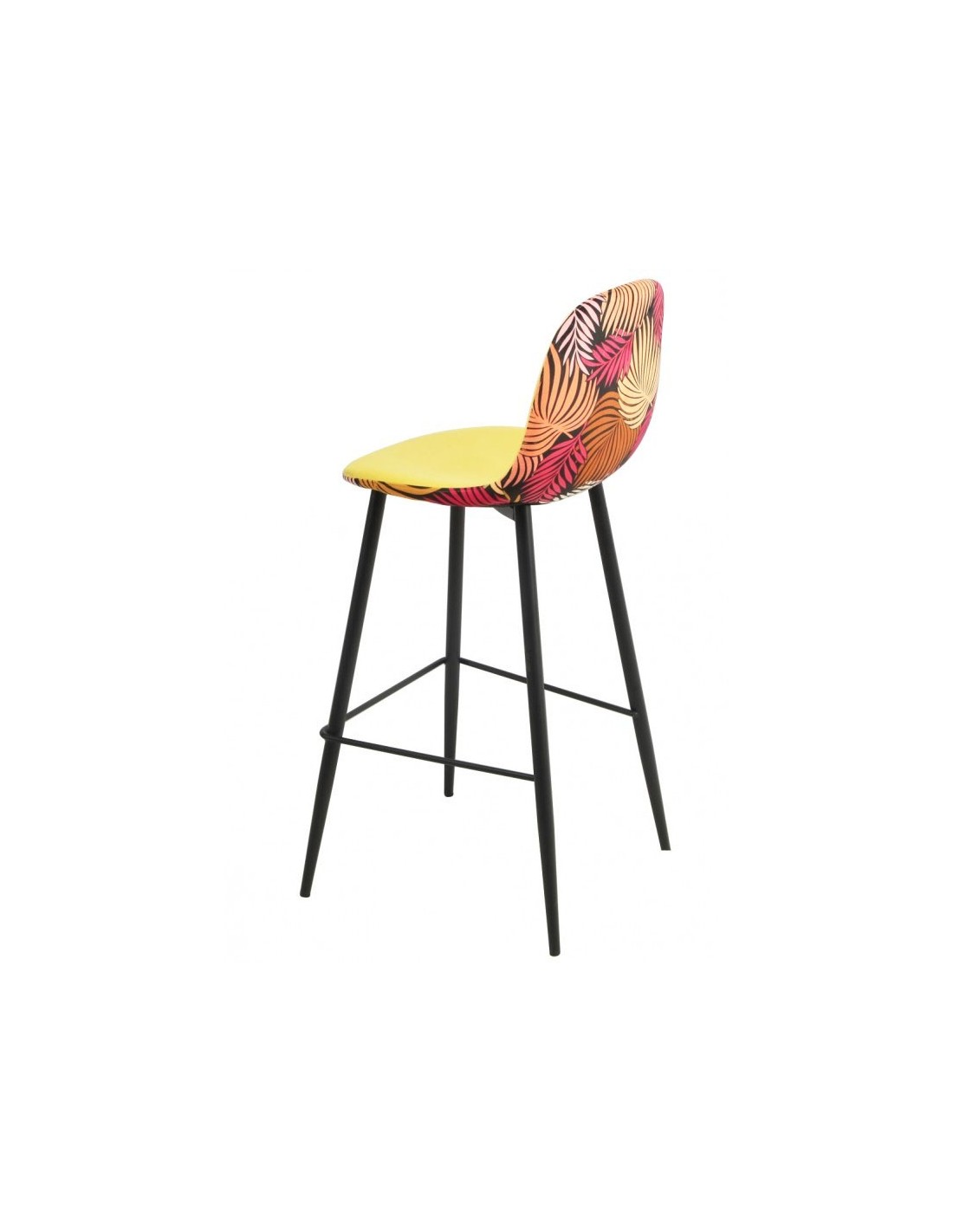Taburete HORUS NEW, metal, tapizado velvet amarillo con trasera floral a juego