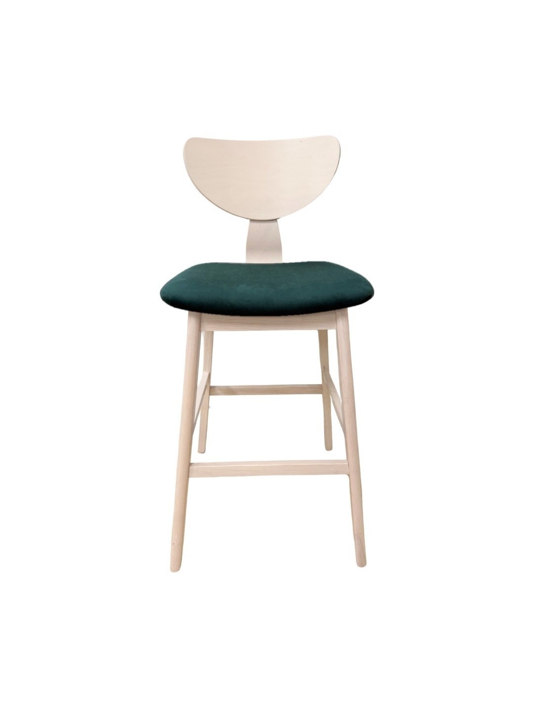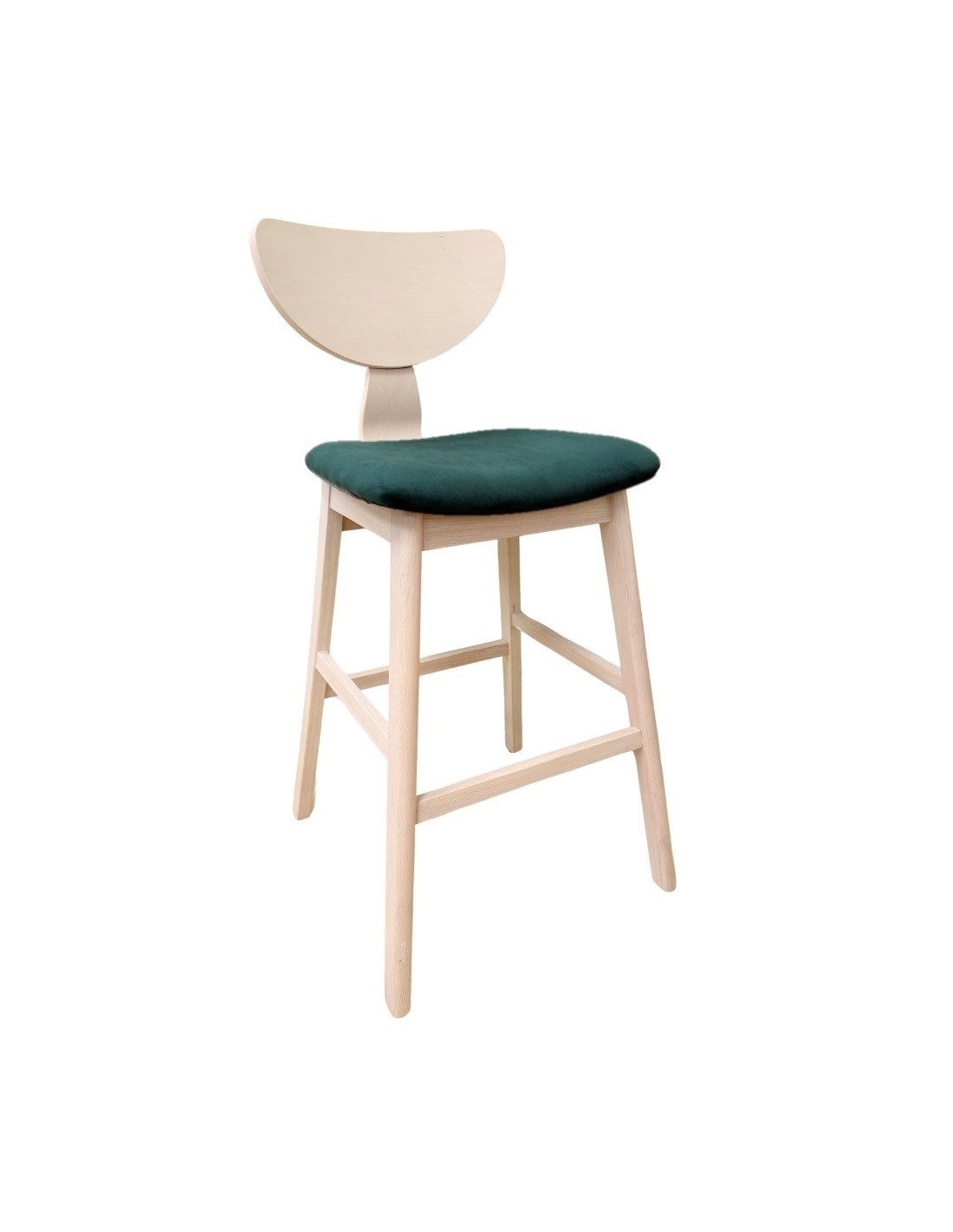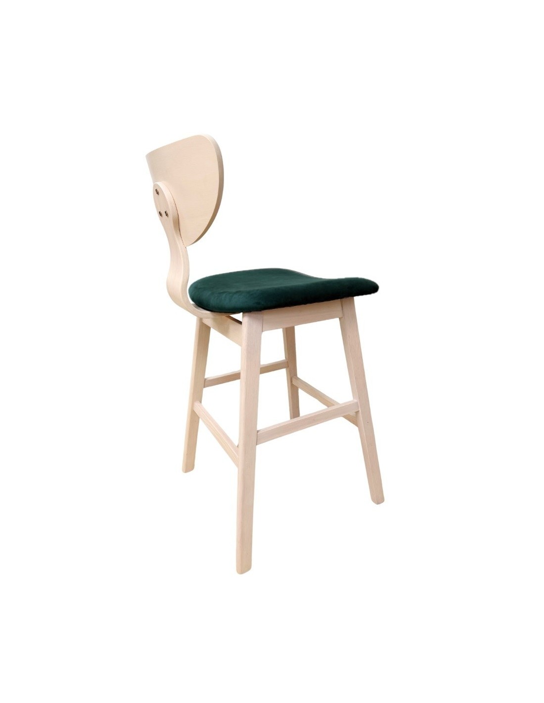 Taburete DUBLIN, madera de hevea, natural, velvet verde oscuro