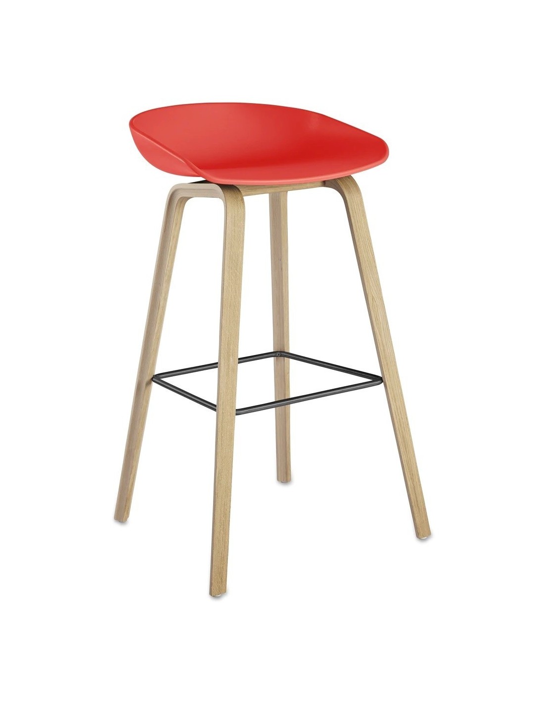 Taburete de diseño, metal, asiento de polipropileno de color rojo