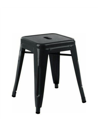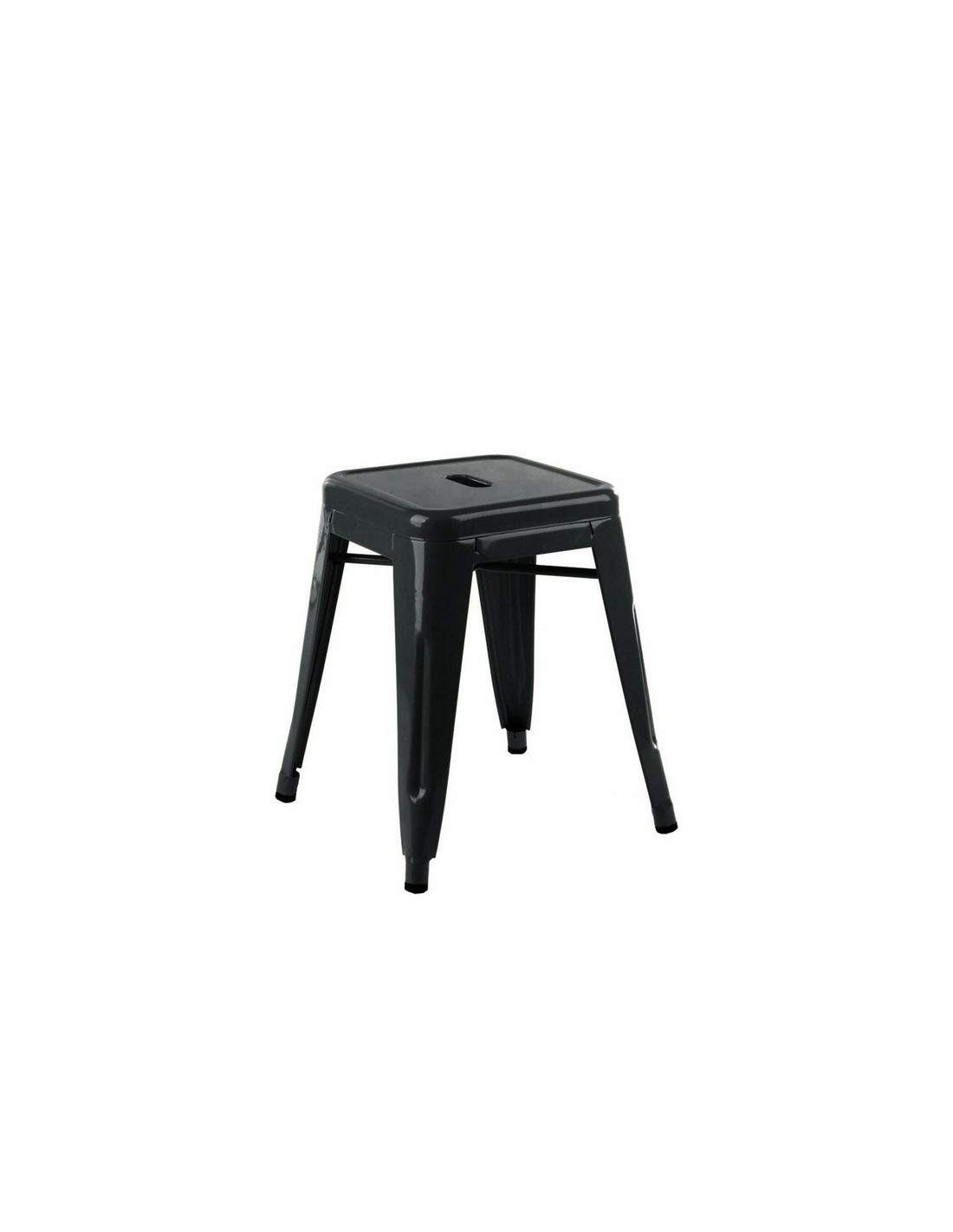 Taburete de diseño, bajo, estructura de acero, pintado en negro. Uso en interiores o exteriores. Otros colores disponibles. Mesa, silla, sillón y taburete alto a juego