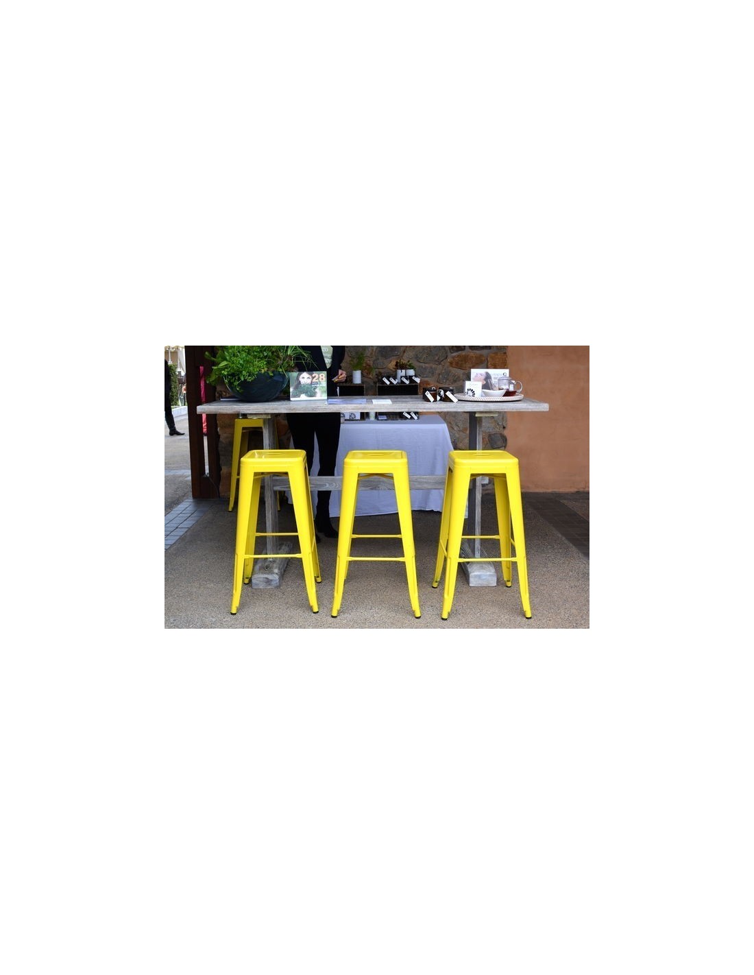 Taburete de diseño, estructura de acero, pintado en amarillo. Uso en interiores o exteriores. Otros colores disponibles. Mesa, silla y sillón a juego