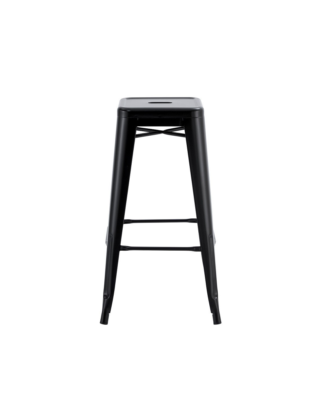 Taburete de diseño, estructura de acero, pintado en negro. Uso en interiores o exteriores. Otros colores disponibles. Mesa, silla y sillón a juego