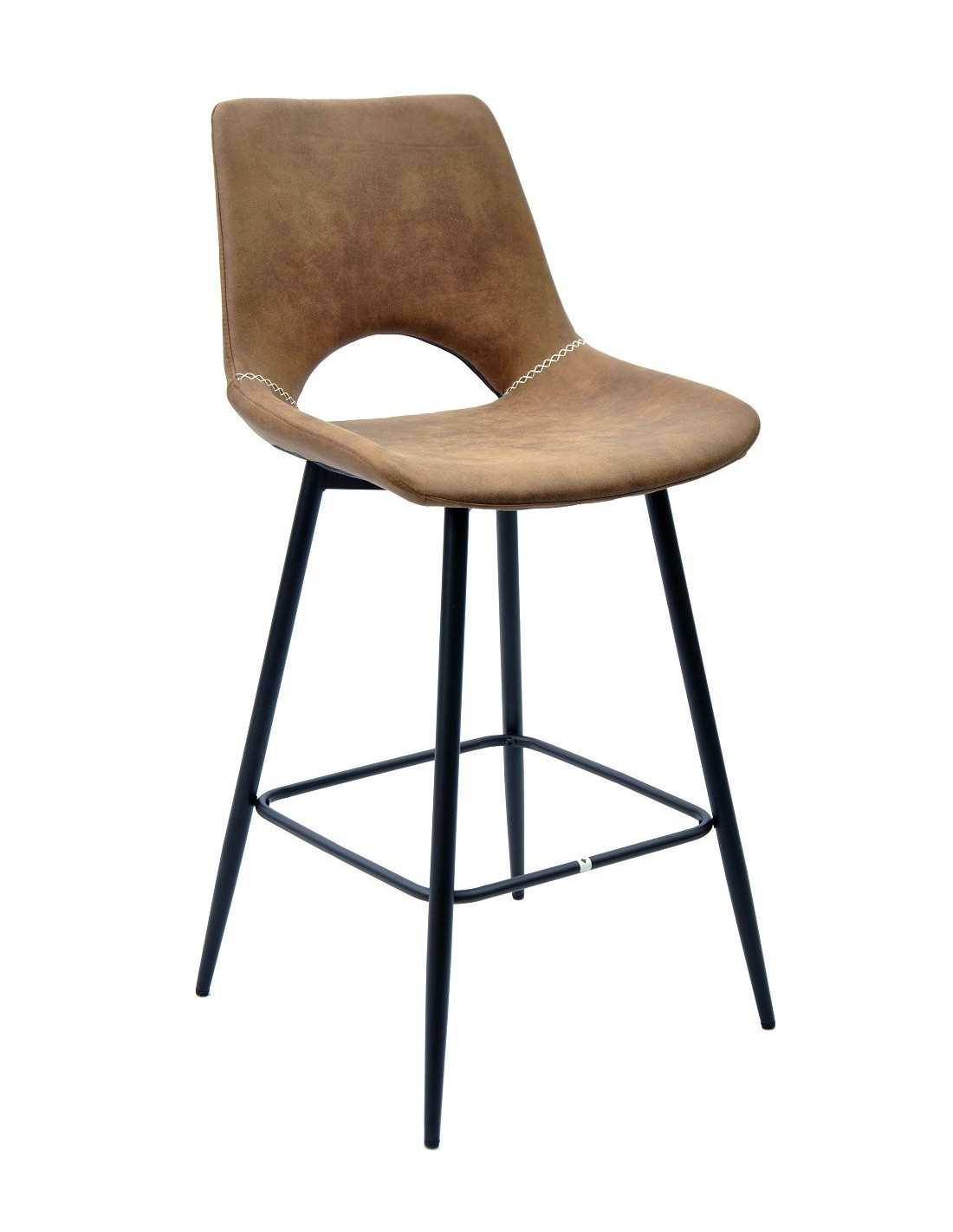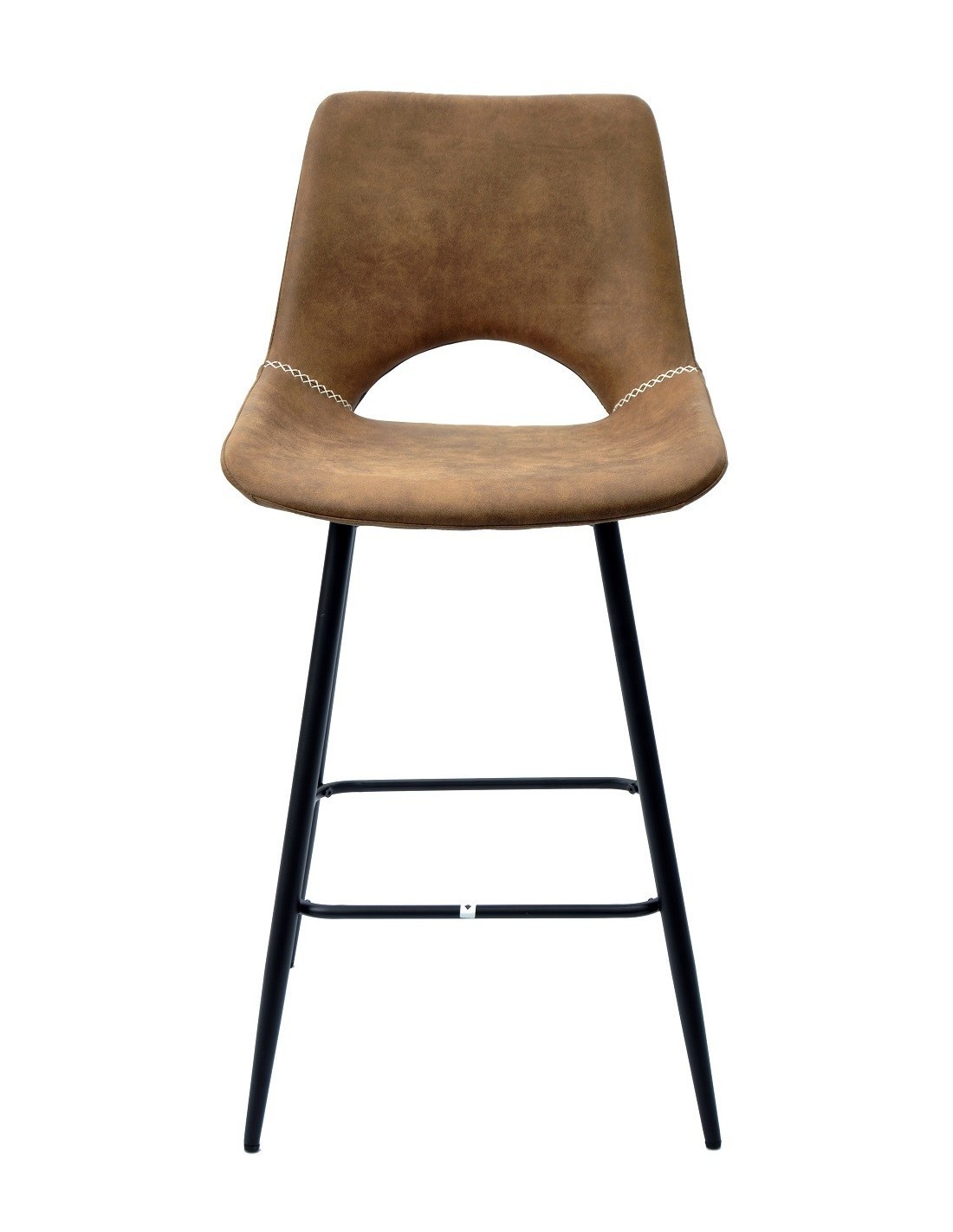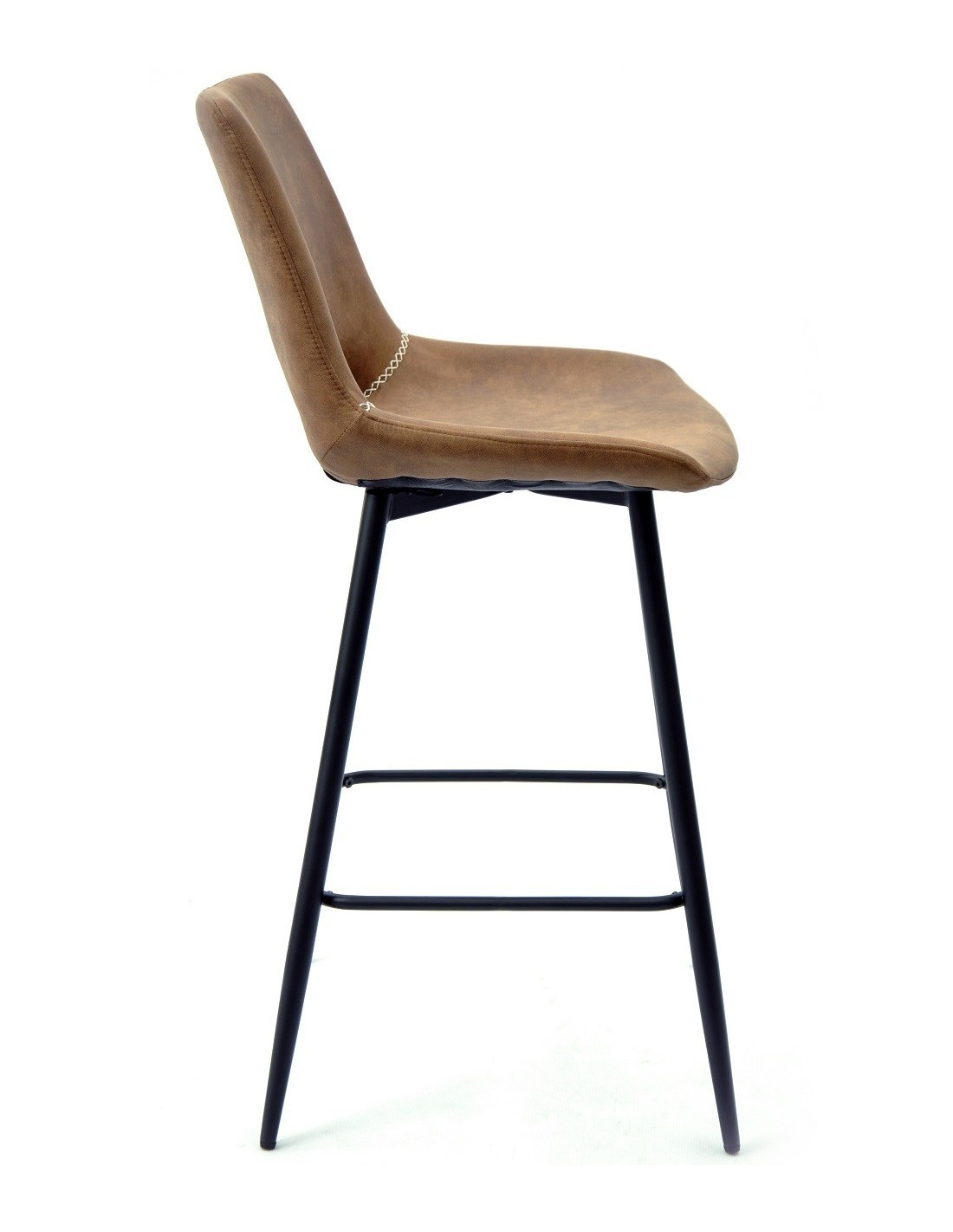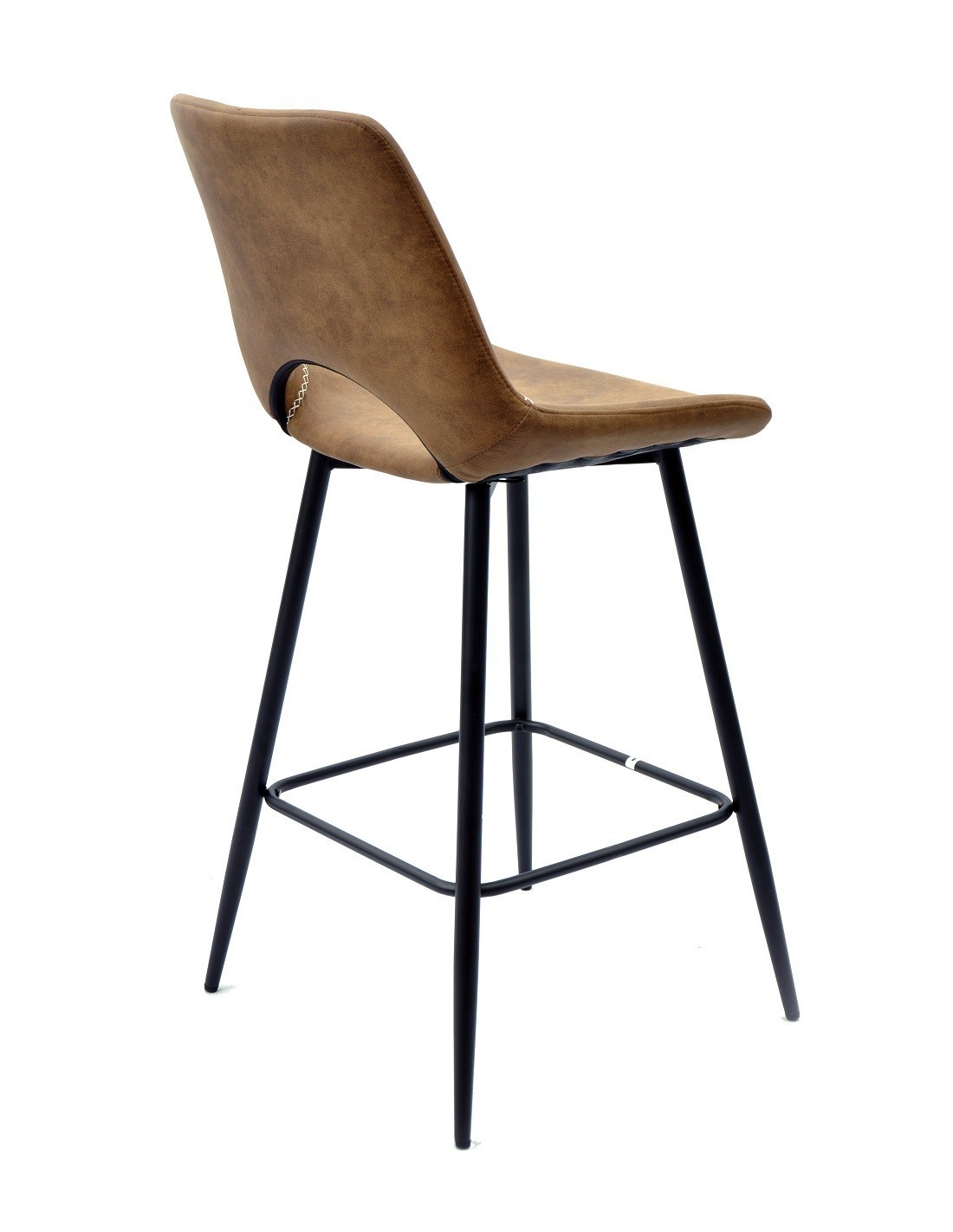 Taburete de diseño, armazón metálico pintado en negro, asiento tapizado en similpiel vintage marrón oscuro. Uso en interiores. Otros colores disponibles. Silla a juego