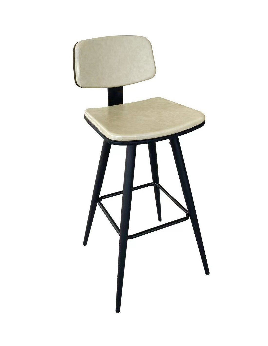 Taburete de diseño, armazón metálico pintado en negro, asiento tapizado en similpiel beige vintage. Uso en interiores.