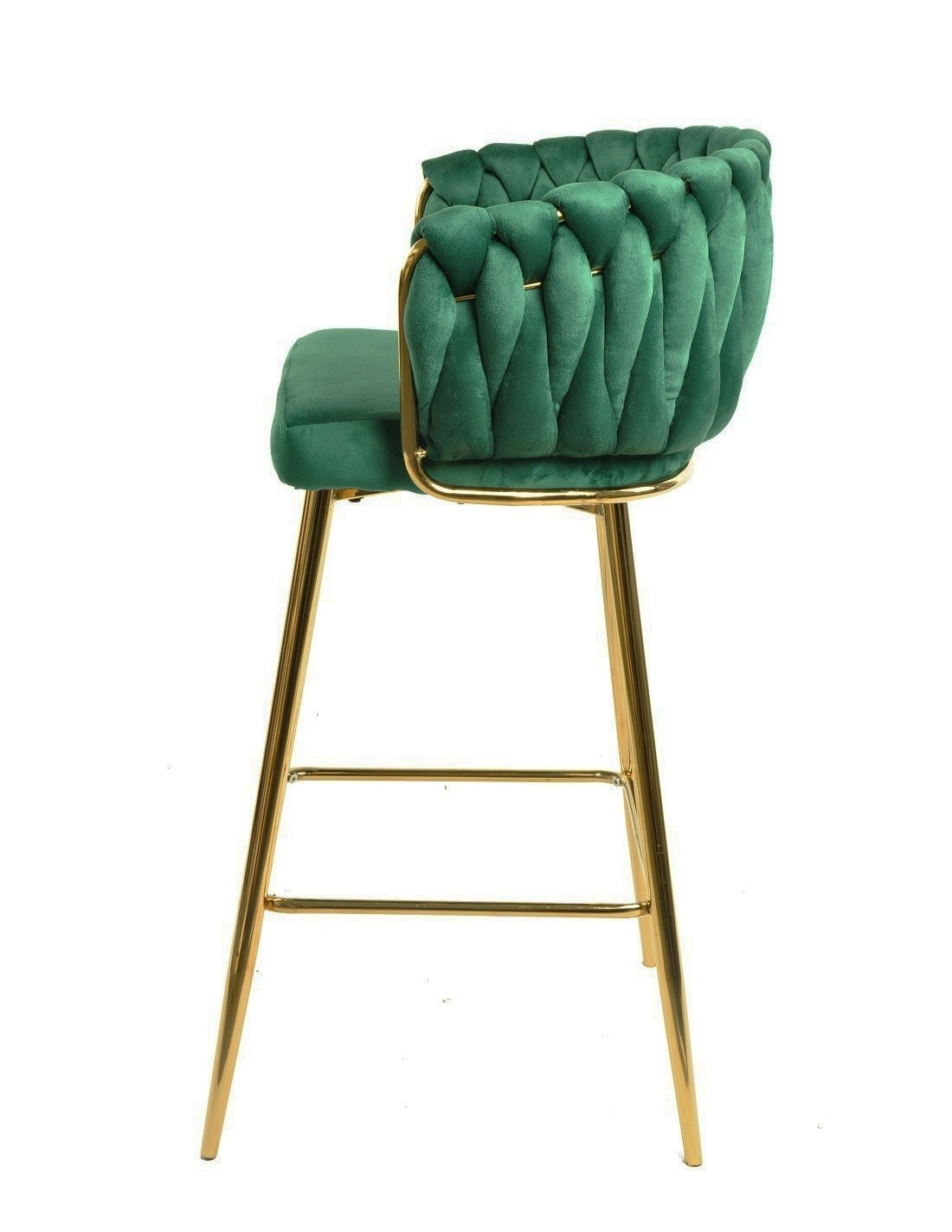 Taburete KING, metal, cromado dorado, tapizado velvet verde oscuro
