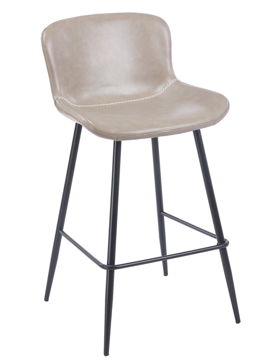 Taburete de diseño, armazón metálico con acabado epoxi negro, asiento y respaldo tapizados en similpiel vintage gris. Sillas y sillones a juego
